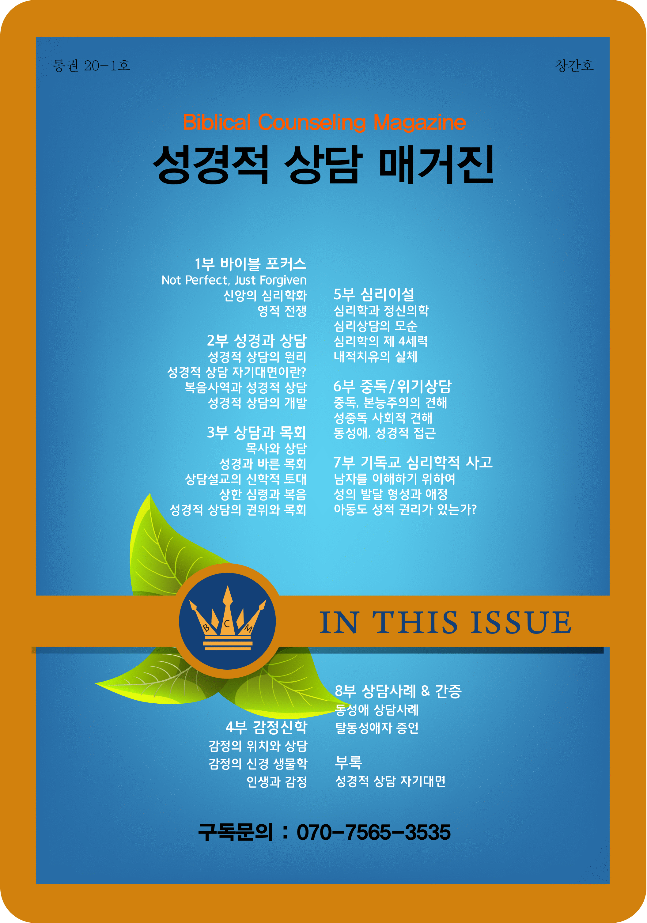 Biblical Counseling Magazine ¼º°æÀû »ó´ã ¸Å°ÅÁø â°£ ¾È³»¸ñȸÀÚ ½ÅÇлý ±³È¸ ÀçÁ÷ Çʵ¶ µµ¼ ²÷ÀÓ¾ø´Â ÀλýÀÇ ¹®Á¦, ¾î¶»°Ô »ó´ãÇÒ °ÍÀΰ¡?[¼º°æÀû »ó´ã ¸Å°ÅÁø]ÀÇ ¸ñÀûÀº ¸ñ¾çÇöÀå¿¡¼ ¹ß°ßµÈ ÀλýÀÇ ¿ª°æ°ú ..